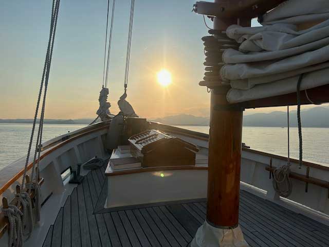 Quando il sole comincia a scendere all’orizzonte , inizia un’esperienza unica: l’apericena in navigazione (10 tipologie di Finger Food) con musica LIVE a bordo di un veliero d’altri tempi….