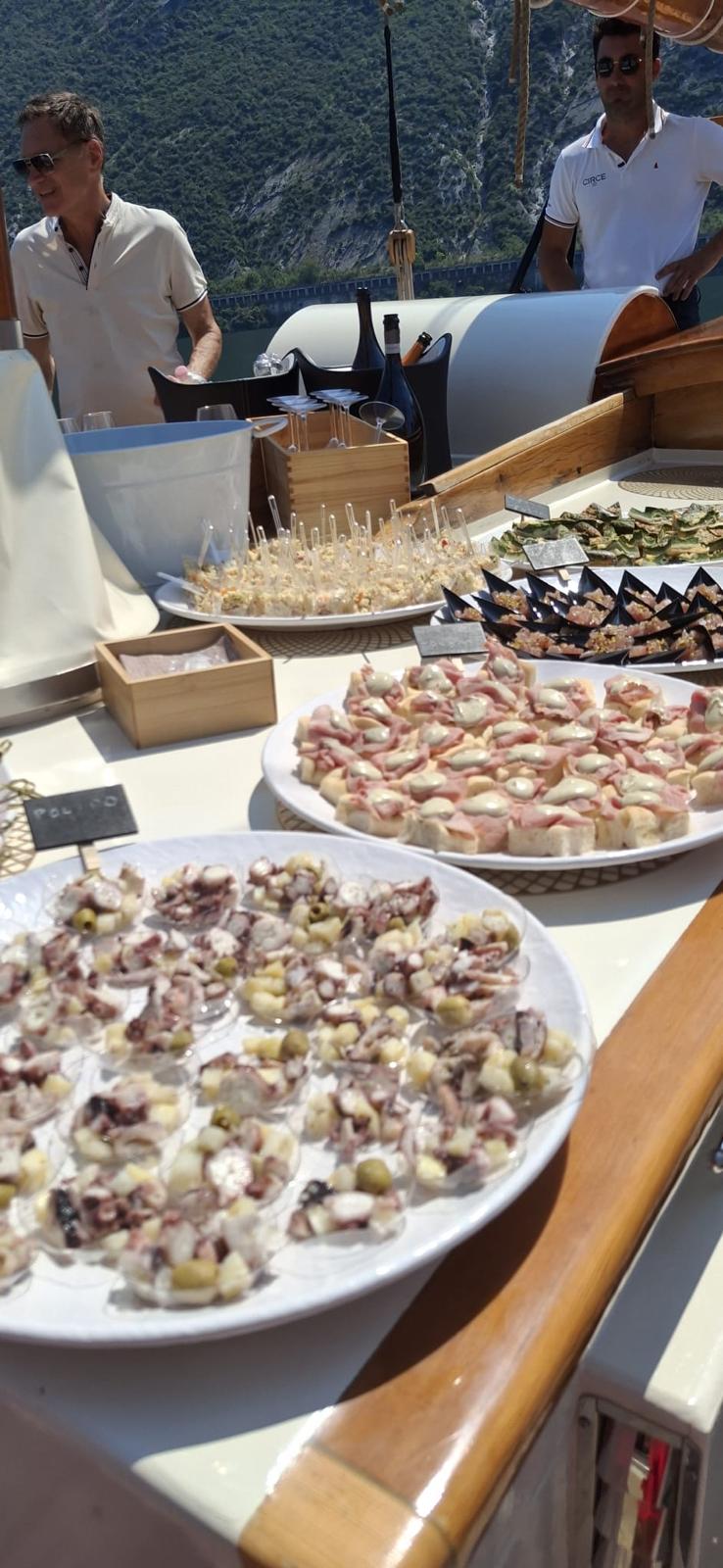 When the sun begins to set on the horizon, a unique experience begins: an aperitif dinner at sea ( 10 types of finger food ) with live music aboard a sailing ship from another era....